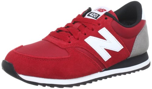 NEW BALANCE U 420 RKW [ROUGE] Voici la toute nouvelle New Balance U 420 - un véritable poids plume ! Une chaussure de running de haute technicité inspirée des années 80 qui séduit par son style rétro-nostalgique ! Derrière son look de course se cache une chaussure performante qui intègre les meilleures technologies de la marque. Les empiècements en nylon assurent une ventilation optimale du pied et le col est rembourré pour un maximum de confort. Glissez vos pieds dans ces superbes chaussures et vous serez conquis ! dessus textile/cuir doublure textile semelle synthétique col rembourré renforts au niveau du métatarse pour une meilleure stabilité, sécurité de marche et un contrôle du mouvement amélioré empiècements nylon pour une ventilation optimale semelle profilée excellente qualité