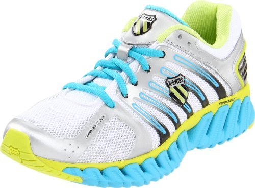 K-SWISS Blade-Max Stable Chaussures de Course pour Femme, Argent/Bleu/Jaune, 37.5